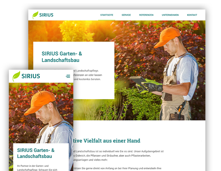 Unser Onepager Theme SIRIUS konzentriert sich auf die wichtigsten Inhalte einer Unternehmenspräsentation. Damit kannst du eine neue Website in weniger als einem Tag umsetzen.